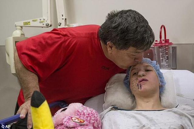 Cô bé phải trải qua rất nhiều cuộc phẫu thuật đau đớn để tái tạo khuôn mặt.