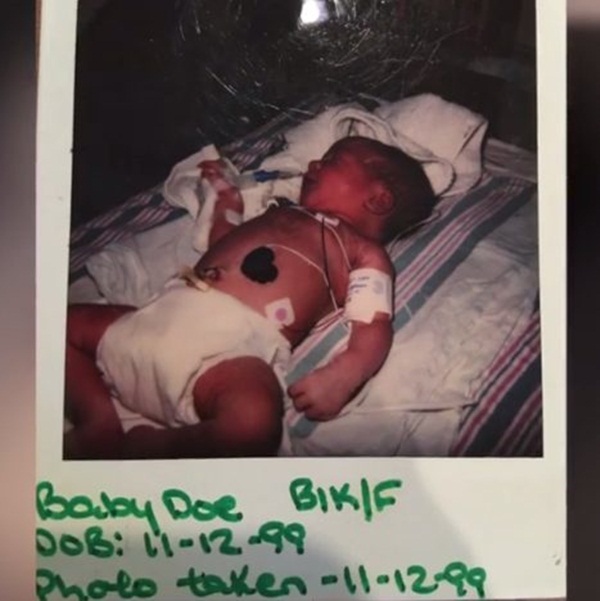 Ngày 2/11/1999, người phụ nữ có tên là Tonie McNair rời khỏi nhà vào khoảng 6h sáng để đi đến chỗ làm thì đột ngột nhận ra điều kỳ lạ ở chân cầu thang. Ban đầu, Tonie nghĩ đó mọt chú mèo con đang được bao bọc kỹ càng thế nhưng khi đến gần, cô mới nhận ra đó là một bé gái mới sinh vẫn còn nguyên dây rốn.
