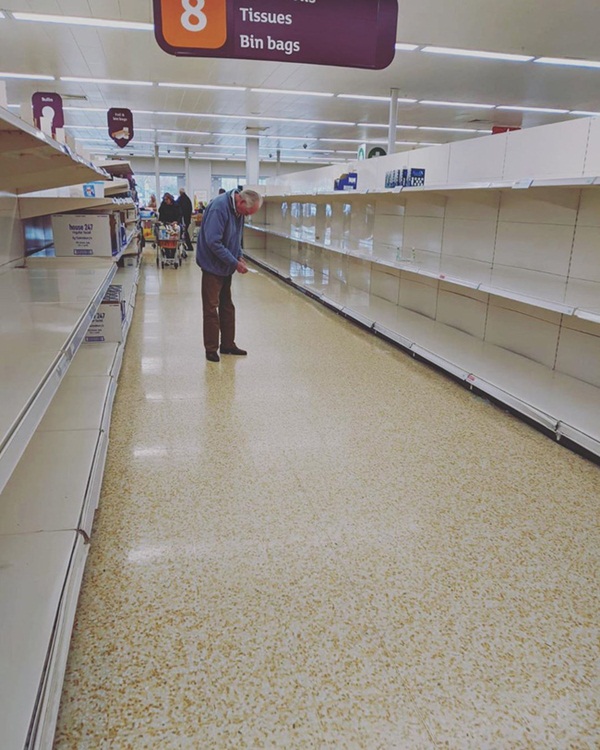 Bức ảnh đã phần nào phản ánh thực tại khắc nghiệt trong cuộc chiến chống Covid-19 ở Anh. Những người cao tuổi đang gặp khó khăn khi họ không còn gì để mua trong siêu thị bởi những người khác đã đổ xô đi mua sắm đồ tích trữ với số lượng lớn khiến cho nhiều mặt hàng thiết yếu trở nên cạn kiệt.