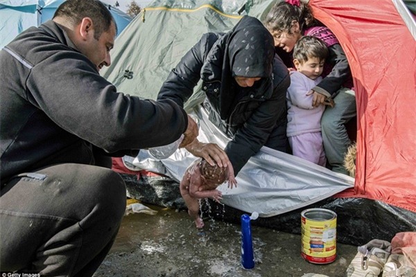 sinh giữa vũng nước bẩn trong trại tị nạn khiến người xem không khỏi xót