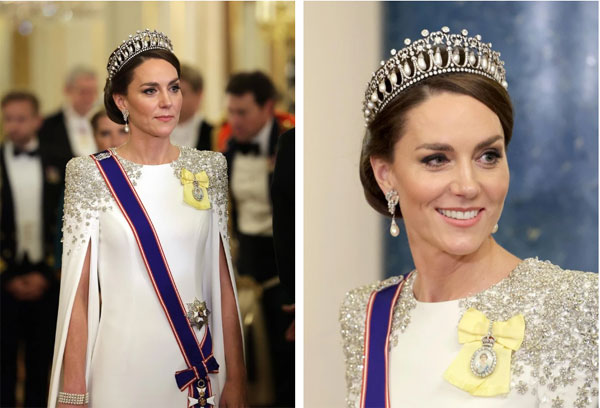 Với dòng tiêu đề “Vương phi xứ Wales – chân dung của sức mạnh và phẩm giá”, họa sĩ Uzor dường như lấy cảm hứng từ vẻ ngoài của Công nương Kate tại bữa tiệc cấp nhà nước vào tháng 11/2022, đánh dấu lần đầu tiên Vua Charles tự tổ chức với tư cách quân vương nước Anh.