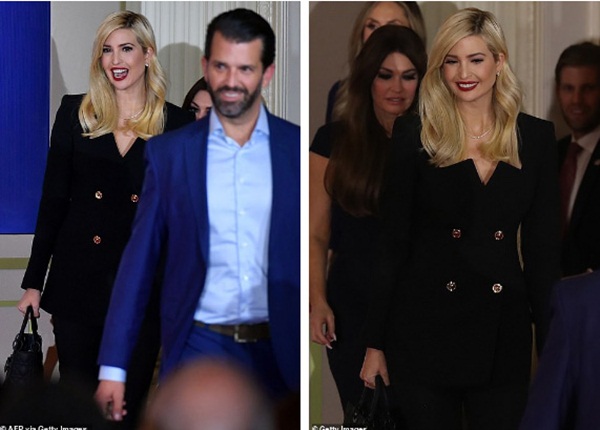 Ivanka Trump nổi bật với phong cách sang trọng, trang điểm nổi bật. Cô được đánh giá là "quân bài" mật ngọt hữu dụng của cha mình, giúp ông nhận được nhiều sự ủng hộ hơn. Dù trong thời gian qua liên tục góp mặt tham gia các sự kiện vận động tranh cử nhưng Ivanka Trump vẫn giữ được thần sắc rạng rỡ và tràn đầy tự tin.