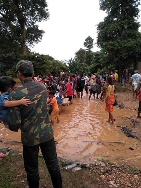 Nước dâng lên quá nhanh ngập đến tận mái nhà khiến nhiều người dân huyện Sanamxay bị mắc kẹt do không kịp sơ tán, phải chờ thuyền cứu hộ. Giới chức địa phương đã điều thuyền đến khu vực lũ để cứu người dân, trong khi mực nước tiếp tục dâng cao sau khi đập bị vỡ.