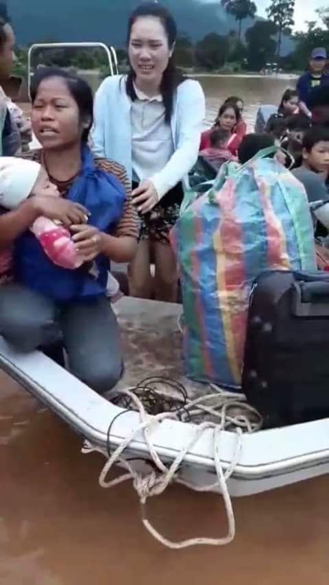 Một người phụ nữ Lào may mắn được cứu khỏi khu vực nguy hiểm nhưng vẫn chưa khỏi bàng hoàng và lo lắng cho những người khác trong gia đình. Bức ảnh được chia sẻ rộng rãi trên MXH của Lào.