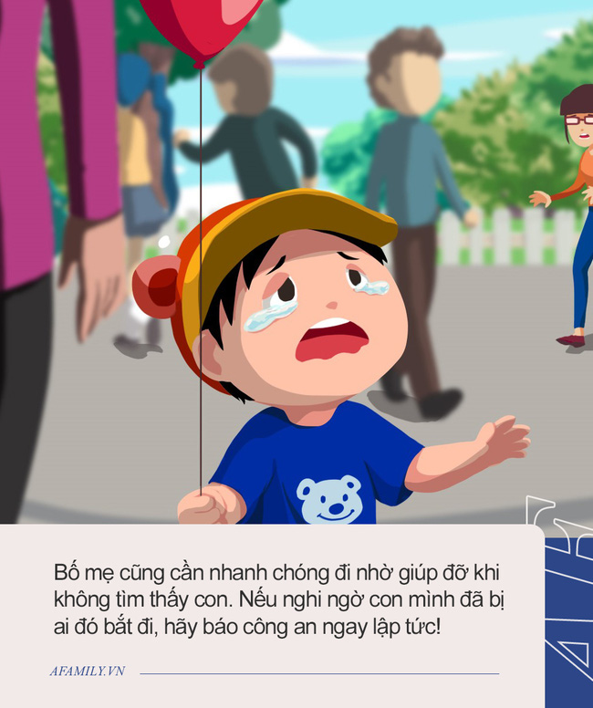 Về phía bố mẹ cũng cần nhanh chóng đi nhờ giúp đỡ khi không tìm thấy con. Nếu nghi ngờ con mình đã bị ai đó bắt đi, hãy báo công an ngay lập tức!