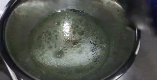 Gas được xục vào hỗn hợp nước rửa chén pha loãng