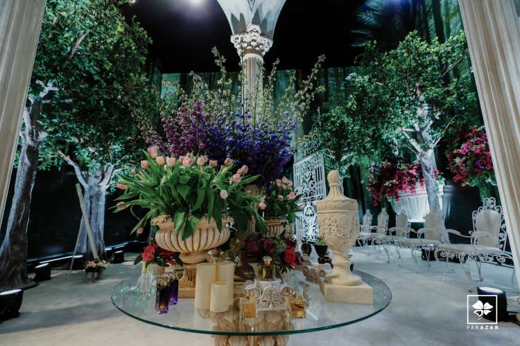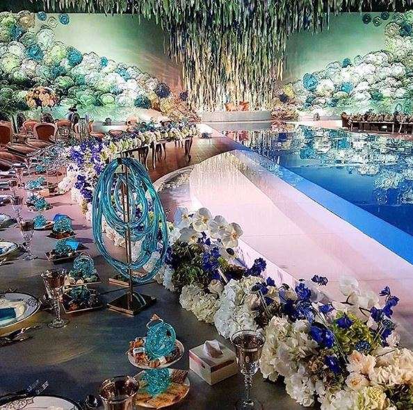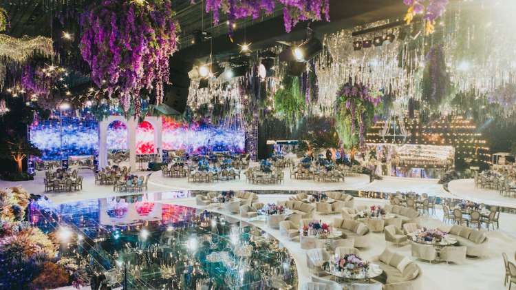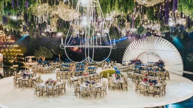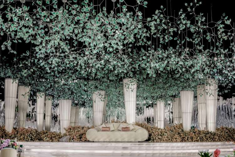 Hôn lễ này được ca ngợi là kiệt tác sắp đặt bởi những chi tiết từ trần nhà. Lấy cảm hứng từ lá xanh, các nhà tổ chức đã tạo nên sự sắp đặt tráng lệ bao phủ địa điểm tổ chức hôn lễ và làm cho nó mang màu sắc huyền diệu thật sự.