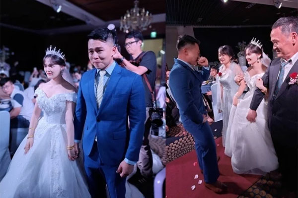 Chú rể đã không kìm được nước mắt, khóc nức nở khi nhìn thấy cô dâu bước vào địa điểm tổ chức.