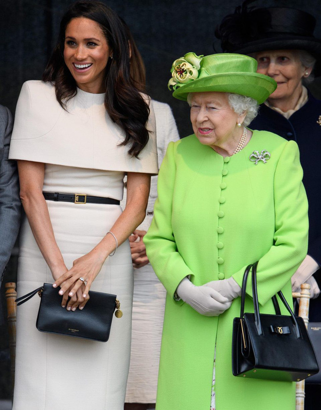 Meghan dường như đang phản chiếu hình ảnh của Nữ hoàng Anh trong khoảnh khắc này. Meghan ngồi thẳng lưng, hai tay nắm vào nhau và rõ ràng Meghan đang cố gắng "sao chép" tư thế trang trọng và trang nhã của Nữ hoàng Anh.