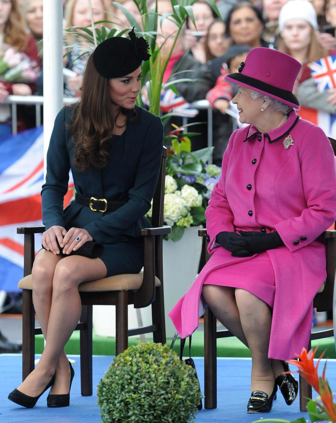 Trong chuyến đi đầu tiên cùng nhau vào tháng 3/2012, Nữ hoàng và Kate giao tiếp với nhau bằng mắt. Trong bức ảnh này cho thấy cả hai đều lắng nghe nhau một cách tích cực, cuộc trò chuyện dường như rất sôi nổi, gần gũi. Tư thế ngồi của cả hai cũng rất giống nhau chứng tỏ cả hai đồng điệu với nhau về mọi mặt