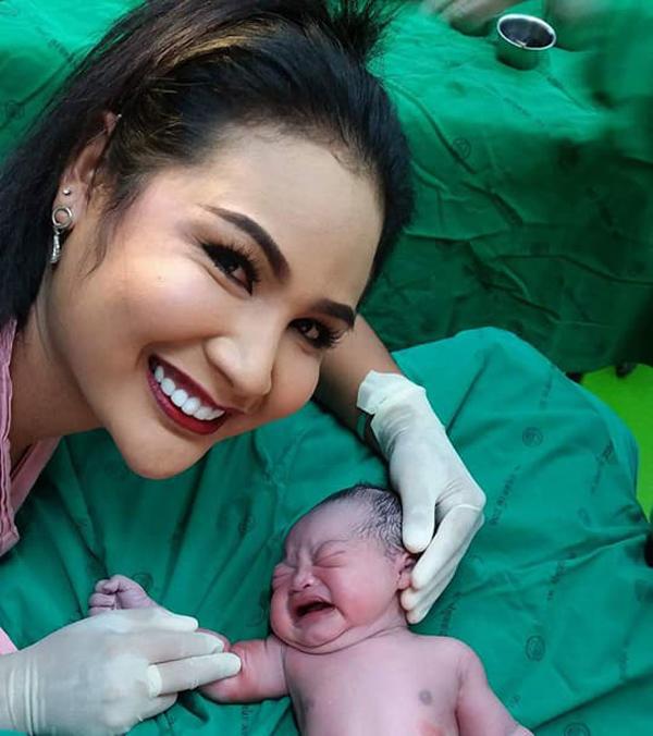 Pitchaya nuôi con bằng sữa mẹ sau sinh.