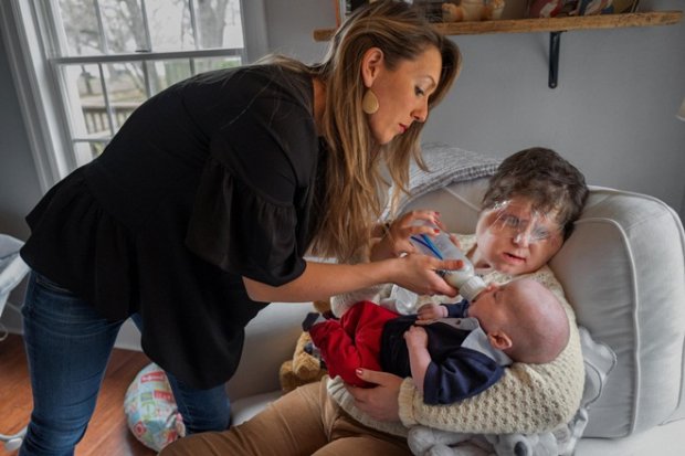 Katie hạnh phúc cho cháu trai ăn sữa. Ảnh: National Geographic