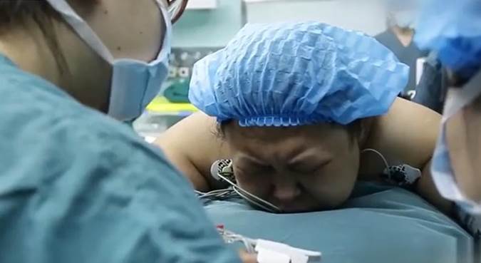 Tuy nhiên, sau khi gây mê thành công, áp lực bắt đầu tới nhiều hơn. Bác sĩ phải mất 5 phút mới tìm được vị trí tử cung. Trong quá trình này, cơ thể Vương Vĩ không còn sức lực, mỡ bụng và sức nặng của đứa trẻ đều sẽ đè lên tim và phổi của cô, gây nguy hiểm đến tính mạng. Cuối cùng, sau hơn 2 giờ phẫu thuật, bé trai nặng 3,5kg đã chào đời khỏe mạnh.