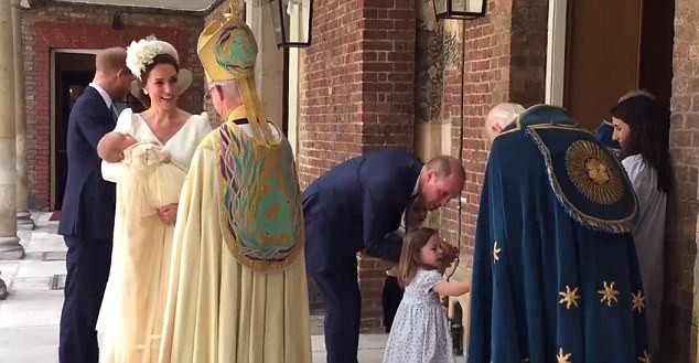 Hoàng tử William sau đó nói với cô con gái 3 tuổi rằng: "Làm tốt lắm con gái". Sau khi rời khỏi nơi làm lễ, Charlotte tiếp tục thể hiện tính cách thân thiện, cưởi mở và vui vẻ khi vẫy tay chào đám đông bên ngoài Điện St. James.