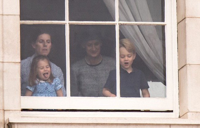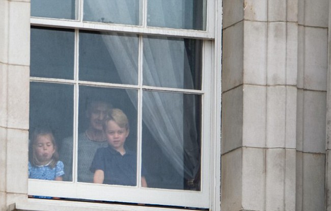 Ngày 10/7 năm nay đánh dấu kỷ niệm 100 năm của Không quân Hoàng gia. Trong khi Nữ hoàng Anh, vợ chồng William và Kate, vợ chồng Harry và Meghan cùng các thành viên hoàng gia khác đứng trên ban công Điện Buckingham chứng kiến buổi lễ kỷ niệm, Hoàng tử George và Công chúa Charlotte ở một căn phòng trong cung điện và xem qua cửa sổ.