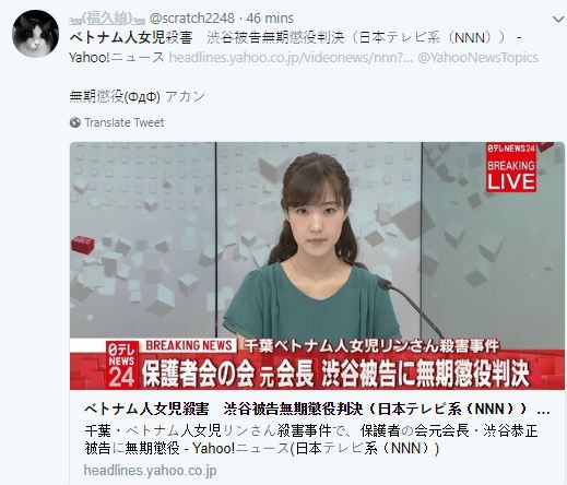 Nhiều bình luận được đăng tải trên twitter Nhật Bản sau khi tòa tuyên án.
