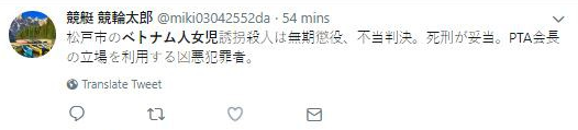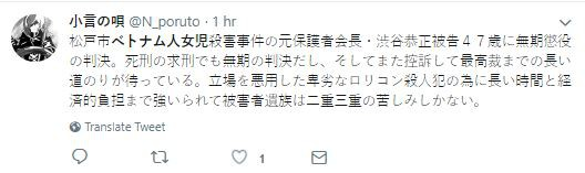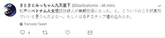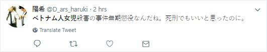 Hung thủ giết hại bé gái Việt Nam tại Matsudo đã bị tù chung thân. Tôi nghĩ tốt nhất là nên như thế, và cũng nên cài chip GPS cho hắn ta nữa".