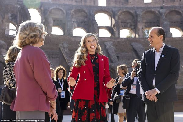 Vợ Thủ tướng Anh trò chuyện thân mật với các Đệ nhất phu nhân, dù còn khá trẻ so với những người còn lại nhưng Carrie Johnson lại thể hiện phong thái chuyên nghiệp và tràn đầy tự tin. Carrie Johnson cũng được truyền thông và dư luận quốc tế dành những lời khen có cánh bởi ngoại hình nổi bật của cô.