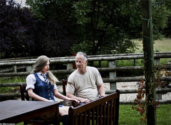 Nhiều đàn ông khác thì vẫn lập gia đình, có con cái và gia đình họ biết về cuộc sống của người chồng, người cha với búp bê tình dục. Trong ảnh: Everard chụp ảnh cùng nàng búp bê Anouska trong khu vườn của mình. Ông bỏ ra nhiều năm trời để sưu tập búp bê và thấy thích thú với búp bê silicon hơn là loại búp bê mềm mại "teddy-babes".