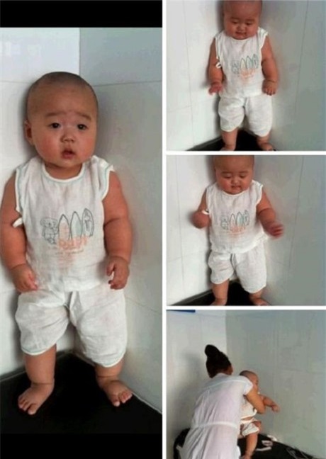 Được biết, những hình ảnh được một bà mẹ trẻ người Trung Quốc chụp lại khoảnh khắc em bé bị bố mắng, em đừng nép sát vào góc tường, vẻ mặt siêu đáng yêu, thậm chí còn có vẻ ngơ ngác như đang không hiểu vì sao bố mắng, muốn cầu cứu mẹ.