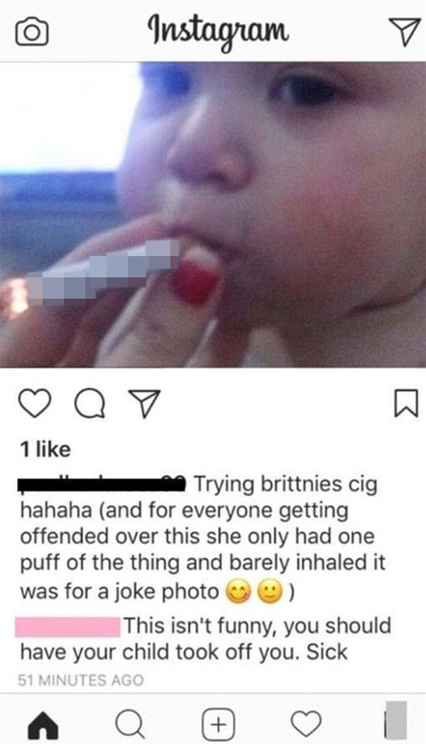 Kèm theo bức hình đó, người đăng tải để dòng trạng thái "trying brittnies cig hahaha..." như một sự giải thích rằng đó chỉ là một trò đùa.
