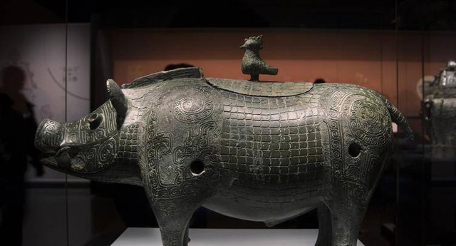 Kết hợp tài liệu lịch sử, con lợn đồng xanh này là vật chứa rượu của người thời nhà Thương, được dùng trong những dịp tế lễ cúng thần. Cái bụng to của con lợn có thể chứa 13 lít rượu. Ngoài ra, thân lợn còn có hoa vân vảy kỳ lân, họa tiết mặt thú, giá trị nghệ thuật và nghiên cứu lịch sử cực kỳ cao.