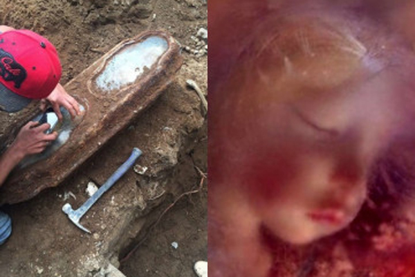 Bức chân dung trên xuất hiện ở bên trong và cả mặt dưới của quan tài.