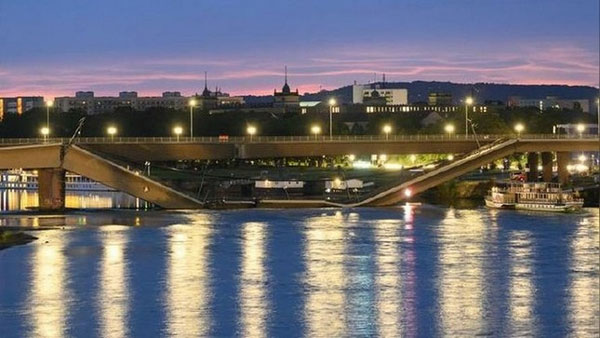 Lực lượng chức năng đã nghe thấy tiếng động lớn lúc 2h59 ngày 11/9. Khi đến hiện trường lúc 3h01, họ phát hiện một đoạn của cây cầu Carola bắc qua sông Elbe đã đổ sập.