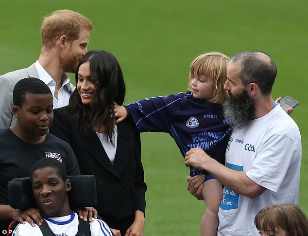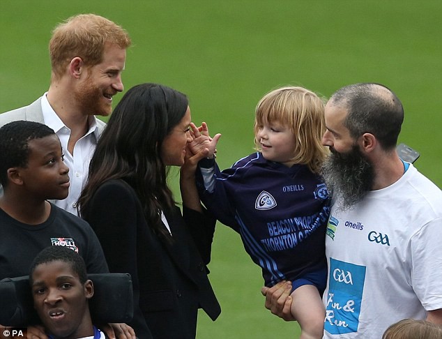 Cậu bé 3 tuổi thích thú khi sờ vào má Meghan.