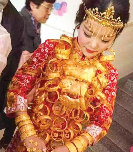 Hình ảnh nổi tiếng trên mạng về những Cô dâu Phủ Điền vàng đeo trĩu người