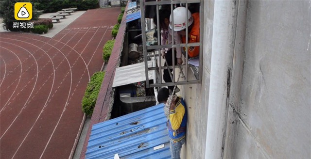 Vụ việc xảy ra vào ngày 3/4 vừa qua ở Nghi Xuân (Giang Tây, Trung Quốc). Theo đó, sau khi phát hiện bé gái 3 tuổi bị mắc kẹt lơ lửng trên cửa sổ trường tiểu học, một cậu bé qua đường đã không ngần ngại leo lên mái nhà và nhanh trí đặt hai chân em lên vai mình.