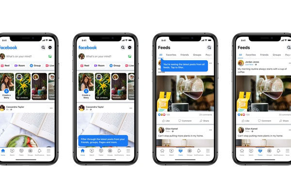 Bên cạnh thẻ Home sẽ là thẻ Feeds mới, không chứa bất kỳ nội dung đề xuất nào mà thay vào đó cho phép người dùng xem các bài đăng gần đây nhất từ bạn bè, cũng như các nhóm và trang mà họ theo dõi. Trong thẻ này, người dùng cũng có thể tạo nguồn cấp dữ liệu yêu thích để nhận thông tin từ bạn bè, trang và nhóm mà họ quan tâm.