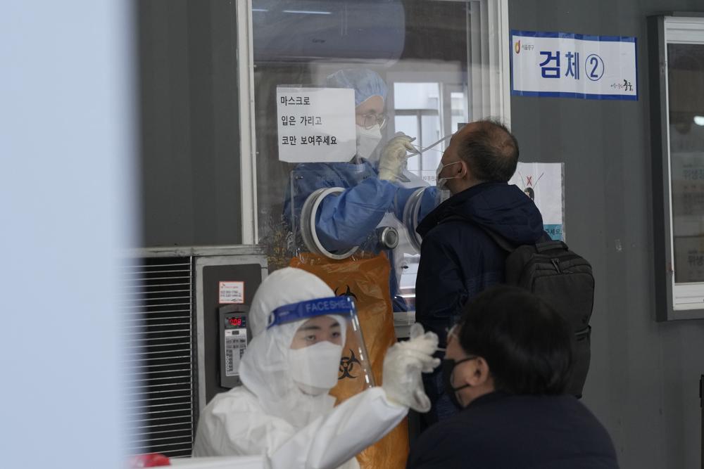 Người dân xét nghiệm Covid-19 tại Seoul, Hàn Quốc, ngày 14/12. Ảnh: AP.