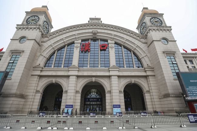 Ga tàu Hán Khẩu ở thành phố Vũ Hán, tỉnh Hồ Bắc, Trung Quốc, hiện đã ngưng hoạt động vì lệnh cấm "nội bất xuất, ngoại bất nhập" của chính phủ nước này nhằm ngăn chặn sự lây lan của virus corona.