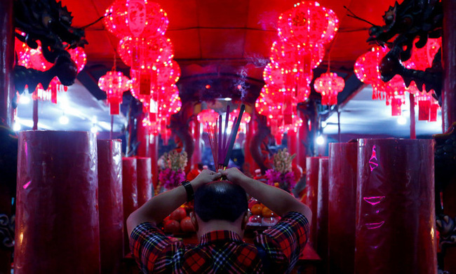 Đi chùa thắp hương năm mới ở Jakarta, Indonesia.