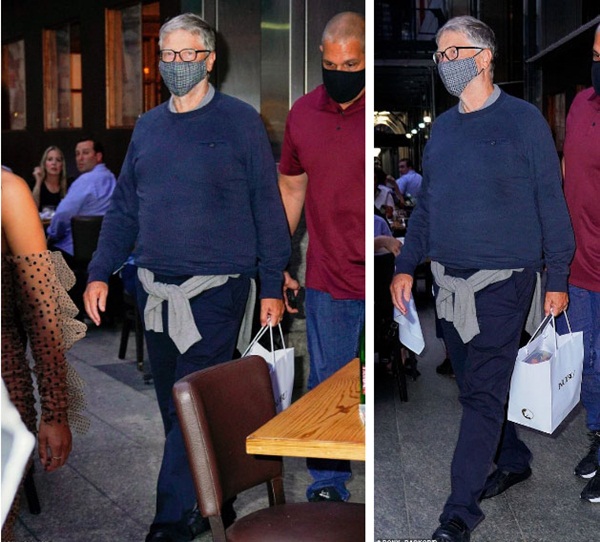 Tỷ phú Bill Gates gây chú ý với ngoại hình xuống sắc, để râu, thân hình phát tướng trông thấy, đặc biệt ông vẫn còn đeo nhẫn cưới. Sau khi rời khỏi nhà hàng sang trọng, tỷ phú Bill Gates lại thu hút sự chú ý khi ông xách một chiếc túi đựng đồ ăn còn thừa trong bữa tối.
