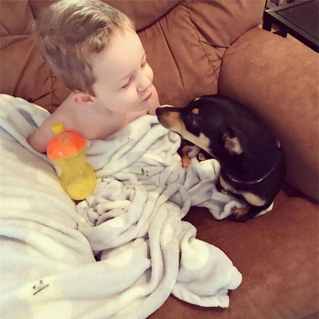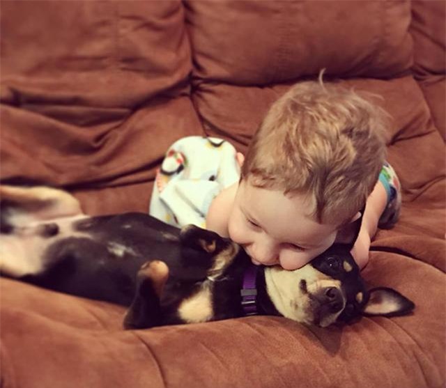 Camden cũng là một cậu bé yêu động vật. Em thích chơi với chú chó trong nhà mình.