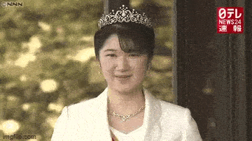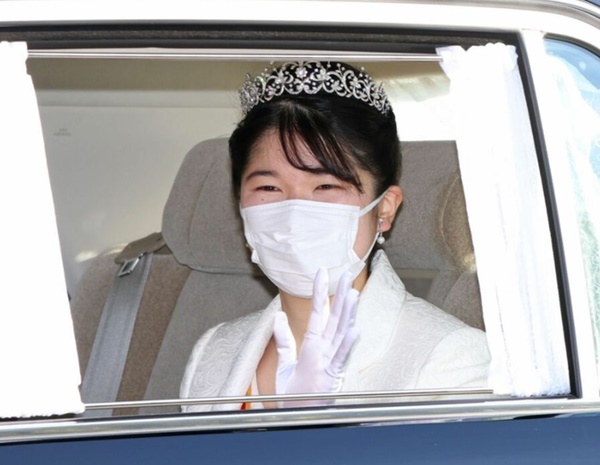 Công chúa Aiko xuất hiện xinh đẹp với chiếc vương miện lấp lánh cúi đầu chào báo giới.
