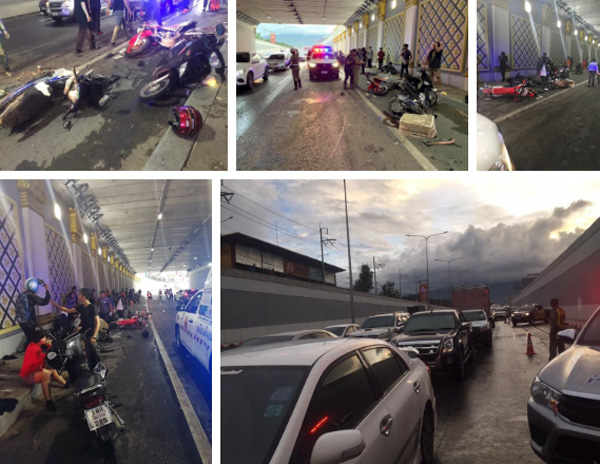 Chiang Mai News đưa tin, vụ tai nạn xảy ra vào khoảng 18h tối (giờ địa phương), ngày 13/6, bên trong hầm chui thuộc tỉnh Chiangmai, Thái Lan. Một đoạn clip ngắn đã ghi lại toàn cảnh vụ tai nạn khiến người xem không khỏi rợn tóc gáy.