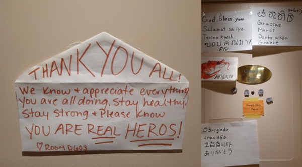 Hình ảnh lan truyền trên mạng cũng cho thấy hàng loạt thư cảm ơn từ hành khách gửi đến các thủy thủ. Họ tức giận vì bị cách ly, nhưng vô cùng biết ơn những người đã phục vụ và chăm sóc cho mình.