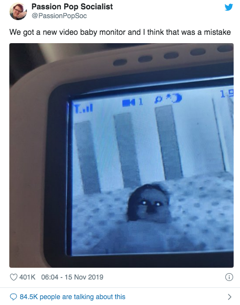 Mới đây, 1 bài đăng trên mạng xã hội Twitter của người dùng @PassionPopSoc đã nhận được rất nhiều sự quan tâm của cộng đồng mạng. Trong đó, người này chia sẻ bức ảnh rùng rợn của con trai trong phòng ngủ, thu được từ chiếc máy quay mới mua và thu hút hàng nghìn bình luận.
