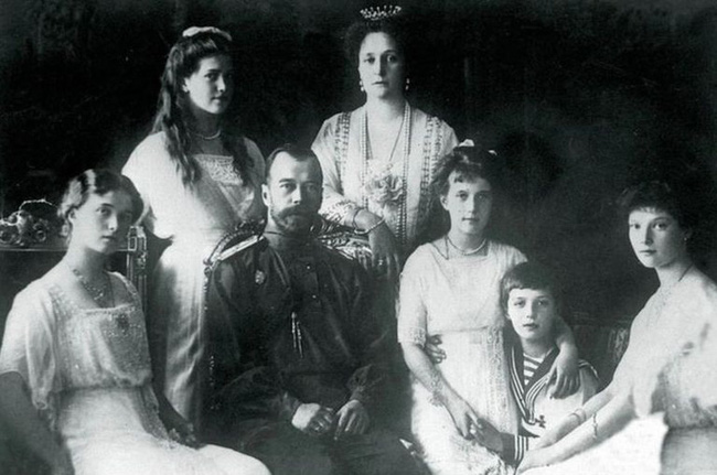 Hình ảnh gia đình Sa hoàng cuối cùng của nước Nga: Sa hoàng Nicholas II, Hoàng hậu Alexandra Feodorovna, 4 cô công chúa Anastasia, Maria, Tatyana và Olga, hoàng tử út Alexei.