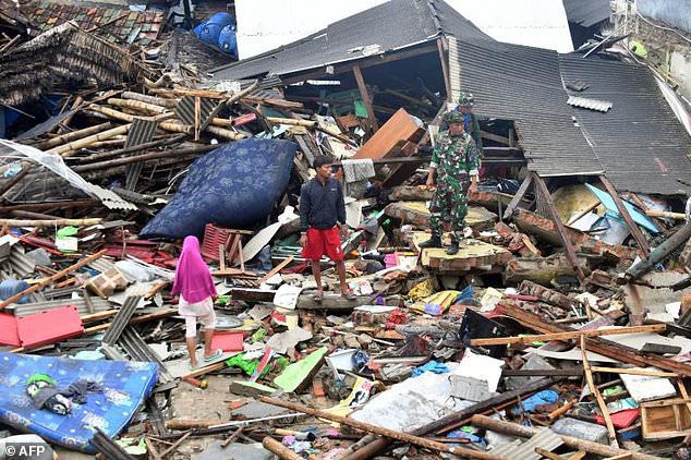 Đường phố tan hoang, những ngôi nhà đổ nát sau trận sóng thần tại Indonesia tối ngày 22/12.