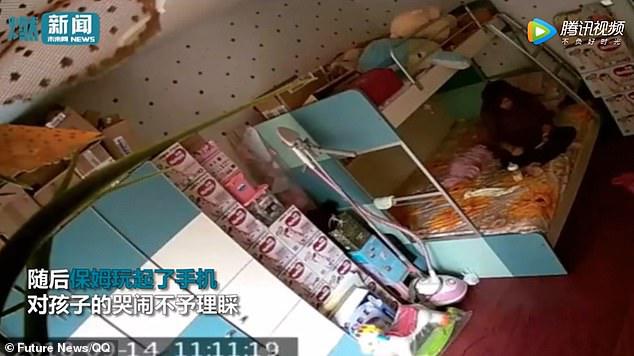 Trong đoạn video, người vú em được nhận nhiệm vụ trông một bé 7 tháng tuổi đã có những hành động bạo hành bé khiến ai xem cũng khỏi xót lòng. Khi người phụ nữ này đang cho bé bú sữa bình thì liên tiếp đánh vào mông, sau đó quăng quật bé xuống giường, ngồi chơi điện thoại, để mặc bé khóc. Đỉnh điểm là hành động người giúp việc đã dùng một chiếc khăn quấn quanh đầu bé và nhấc bổng lên.
