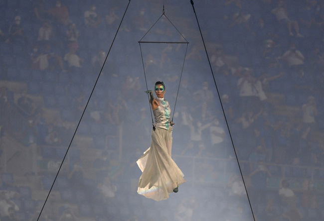 Những quả bóng bay được trang bị hệ thống cho phép chúng bay lên và hạ xuống theo nhịp điệu tạo ra hình ảnh đầy cuốn hút xen kẽ với những màn pháo hoa rực rỡ ở Olimpico.
