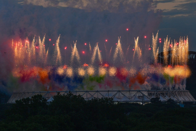 Người xem mãn nhãn với những màn pháo hoa rực rỡ trên sân Stadio Olimpico.