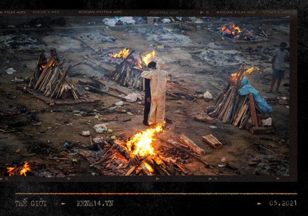 Ấn Độ ngày 28/4, 36 thi thể được xếp vào hố hỏa táng làm từ bê tông, được chỉ định đốt lửa vào lúc 10h sáng. Những thi thể đến sau được vận chuyển đến một bãi đậu xe nhớp nháp bùn đất, chuẩn bị cho một cuộc hỏa thiêu tập thể tiếp theo.