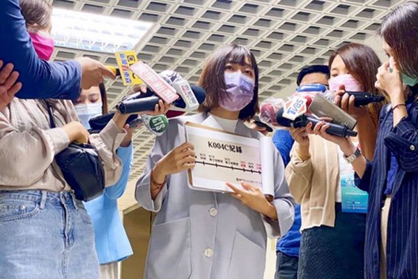 Ủy viên độc lập của Hội đồng thành phố Đài Bắc Lin Ying-meng (giữa) trong cuộc họp báo ngày 13/10, với các bằng chứng cáo buộc ít nhất 2 cư dân bị tiêm vaccine Covid-19 hết hạn (Ảnh: Taipei Times)