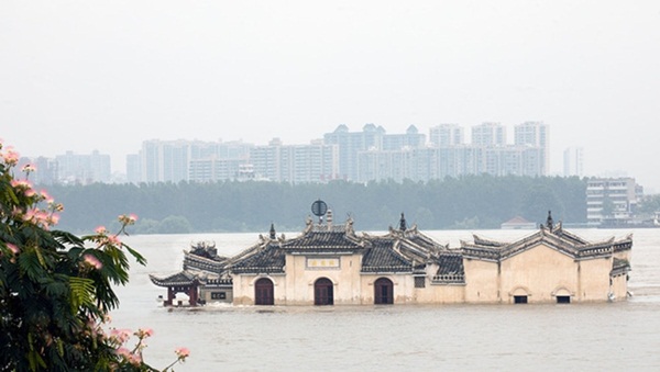 Hình ảnh Quan Âm Các gồng mình giữa nước lũ Trường Giang.