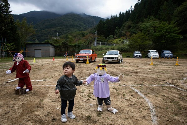 Vì thiếu vắng tiếng trẻ em, một cư dân trong làng đã tạo ra những con búp bê trẻ em để tái tạo lại cuộc sống ngày xưa.